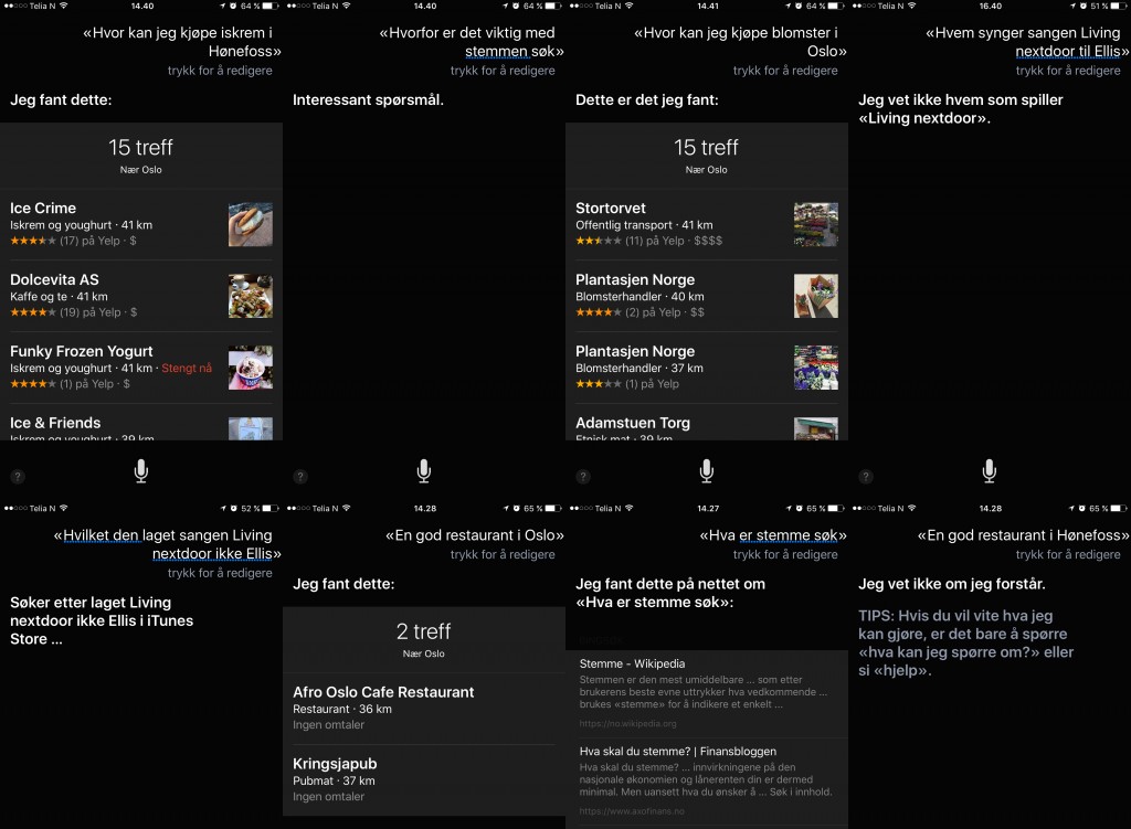 Det finnes enn så lenge ingen gode undersøkelser på stemmesøk gjort i Norge, eller hva de faktiske tallene ligger på her til lands. Vi kan anta at stemmesøk i større grad henger sammen med teknologien, og hvor tilgjengelig denne teknologien er. Jo bedre søkeassistentene, som Siri og Google Voice Search blir, jo mer tilbøyelig vil vi være å benytte teknologien. Vi tror likevel at det er på hjemmefronten mye vil skje, med inntog av Amazon Echo, Apples Home app og Google Home, og man kan anta at det først er her det blir akseptabelt å snakke til assistenten.