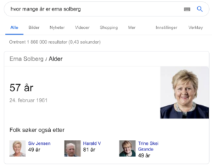 Å finne ut alderen til Erna Solberg.